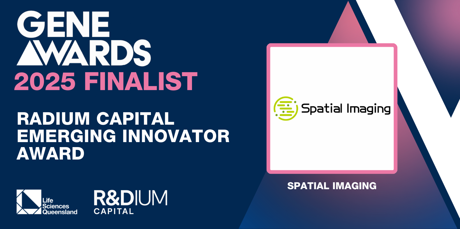 l am delighted to share that Spatial Imaging on being named a finalist in the 2025 GENE – Radium Capital Emerging Innovator Award. Being recognised as a finalist is a great achievement and acknowledgement of our hard work throughout last year